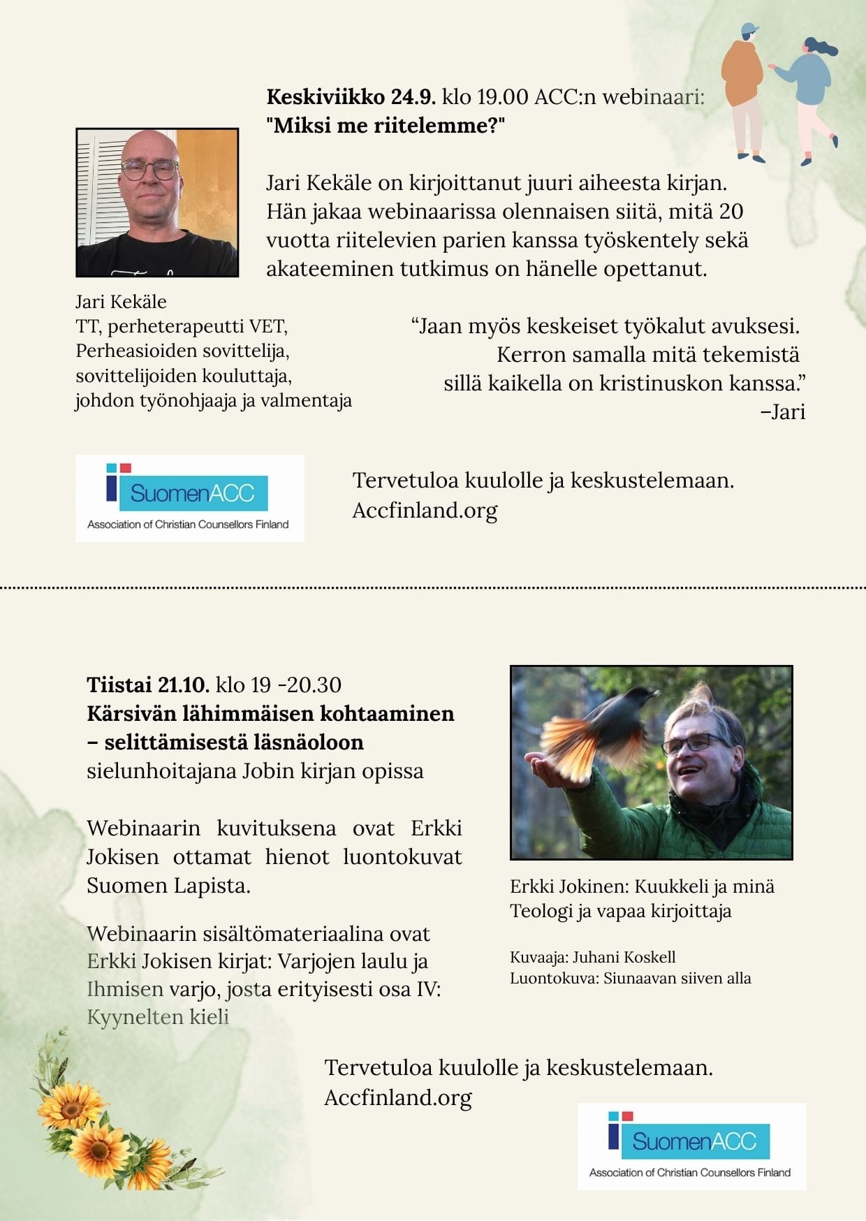Molemmista saat lisätietoa TÄSTÄ ja webinaarisivuilta. Ilmoittautuminen Suomen ACC:n verkkokaupassa .