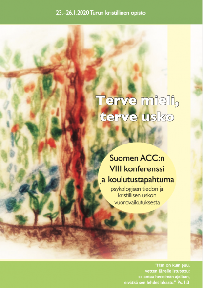 Turun kristillisellä opistolla 24.-26.1.2020 järjestetyn Suomen ACC:n VIII konferenssi psykologisen tiedon ja kristillisen uskon vuorovaikutuksesta -tapahtuman luentokooste. Kooste pitää sisällään konferenssissa pidettyjen luentojen sekä kanavien tiivistelmät. 24 sivua, koko A4, neliväri.